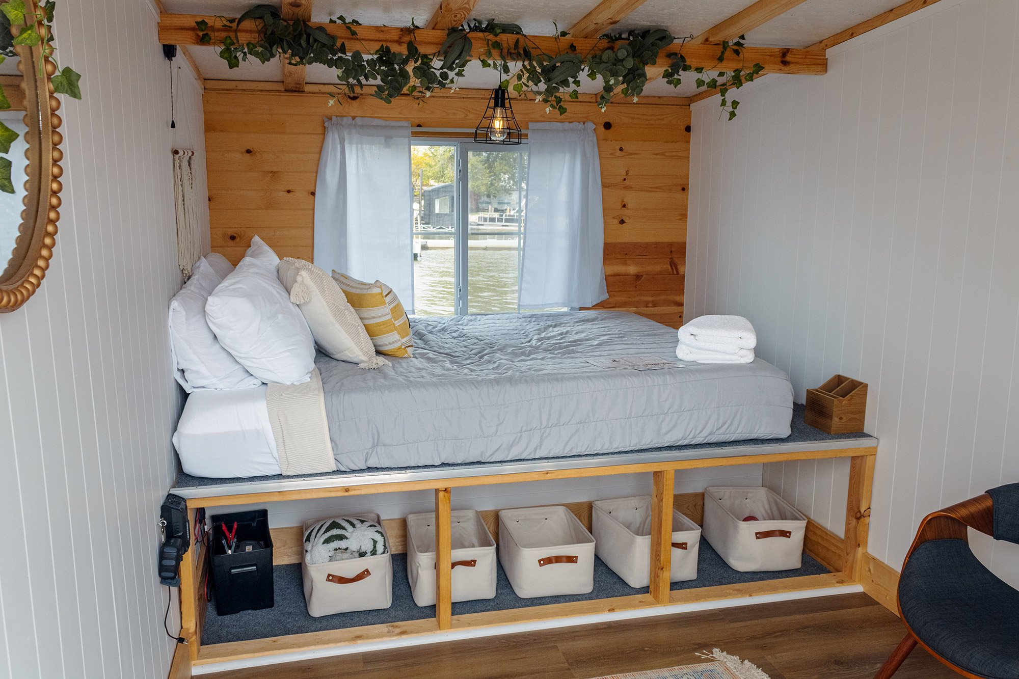 Today, the property has about 30 units heading into the 2026 season. The floating cottages are 25 by 8 feet—small, but every inch intentional. Kitchenette. Living area. And at the head of the bed, a massive picture window staring straight into the lake.