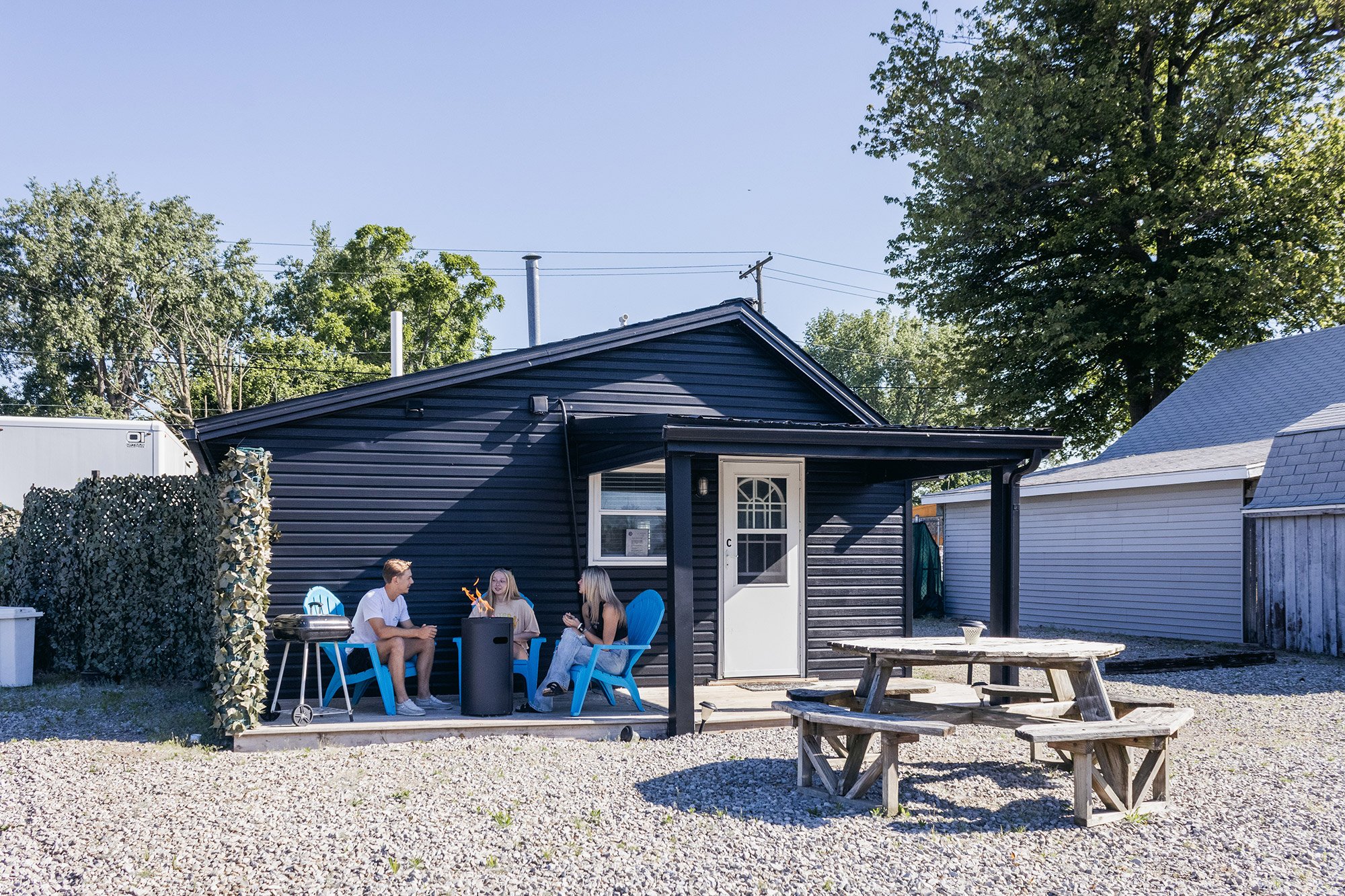 - Lux Cottages: Built for $55,000 each. Full bathrooms, kitchenettes, AC, heat, a 4-foot porch, and that signature picture window.