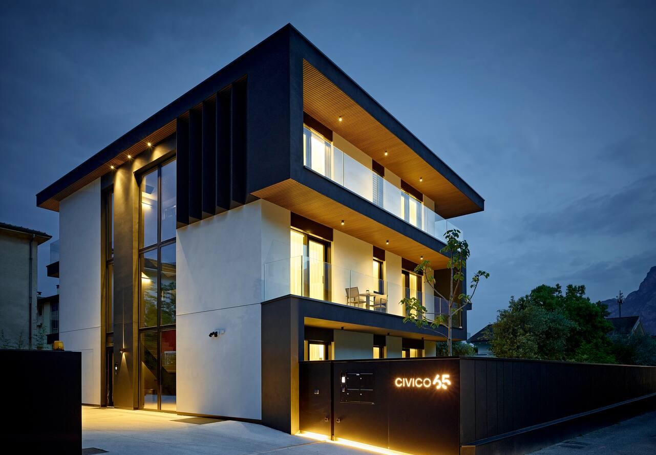 This one breaks the pattern. A minimalist luxury apartment near Lake Garda with mountain views, EV charging, and thoughtfully curated interiors.